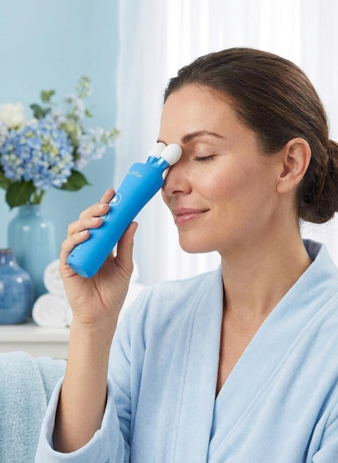 Q: How does the SinusVibe actually work? A: It uses targeted vibration technology to stimulate key pressure points around your nose and eyes. Many people use it when they’re feeling facial pressure or tension around the brow/cheeks to relax those areas.