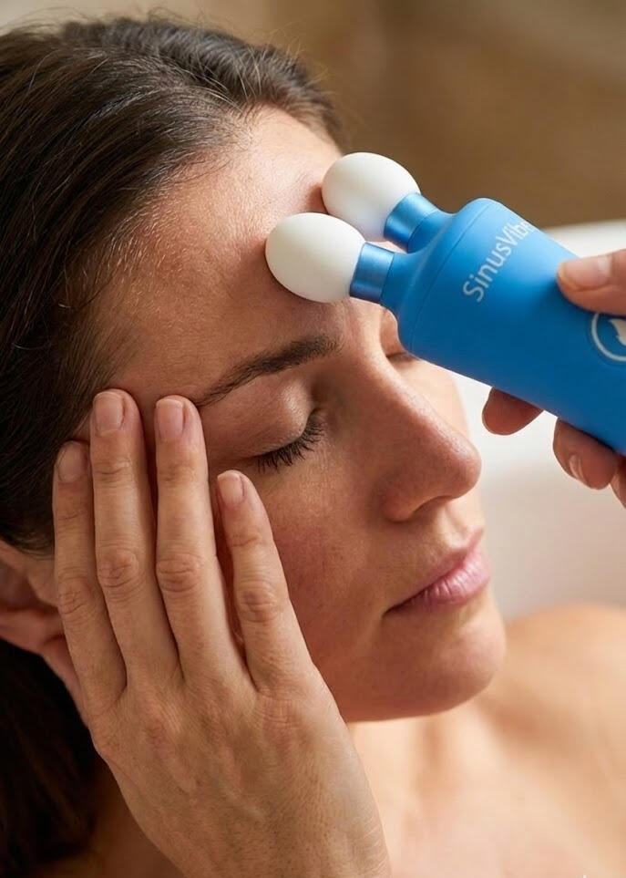 Q: How does the SinusVibe actually work? A: It uses targeted vibration technology to stimulate key pressure points around your nose and eyes. Many people use it when they’re feeling facial pressure or tension around the brow/cheeks to relax those areas.